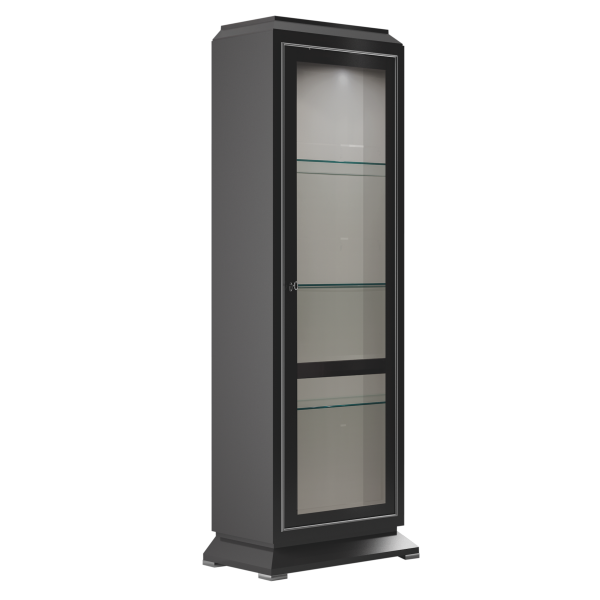 1 Glass door, 1 internal drawers, 2 shelves.La vetrina è caratterizzata da una struttura in legno con laterali e ante in vetro, le ultime incorniciate da profili Led che illuminano e creano atmosfera.