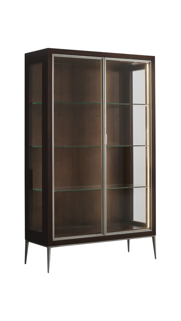 2 Glass doors, shelves.La vetrina è caratterizzata da una struttura in legno con laterali e ante in vetro, le ultime incorniciate da profili Led che illuminano e creano atmosfera.
