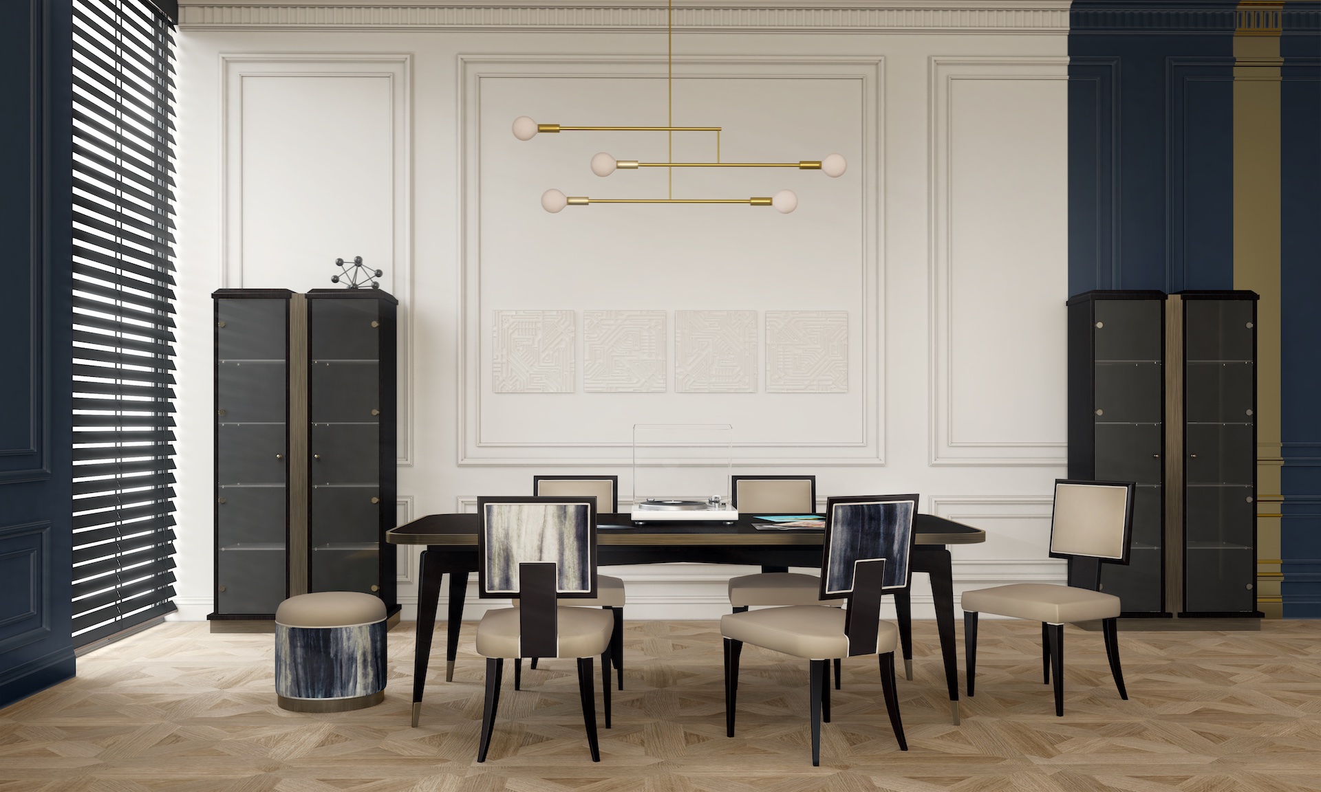 D0117 Table (under-top profile, lower details and feet in polished chrome finish) Dimensions Places at the table Packaging 3 packages (310x130x14, 30x100x78, 30x100x78) 1.03 cu m 122 kg