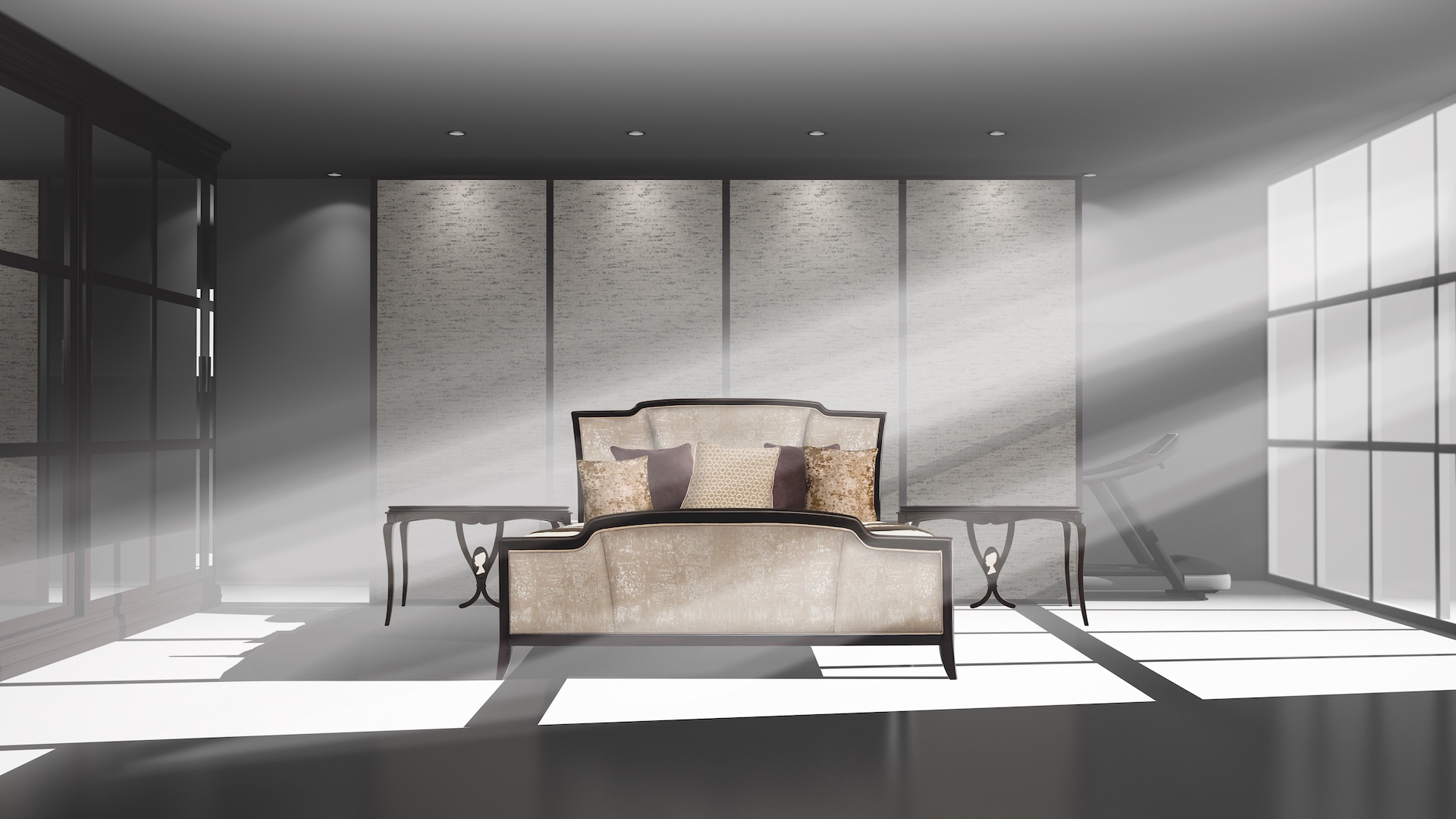 P0341 Bed chrome metal feet Dimensions Metraggio upholstery COM fabric (H 140 cm): 5 ml skin: 10 sqm Packaging 4 packages (195x12x145, 210x30x20, 210x12x30, 200x90x6) 0.65 cu m 127 kg