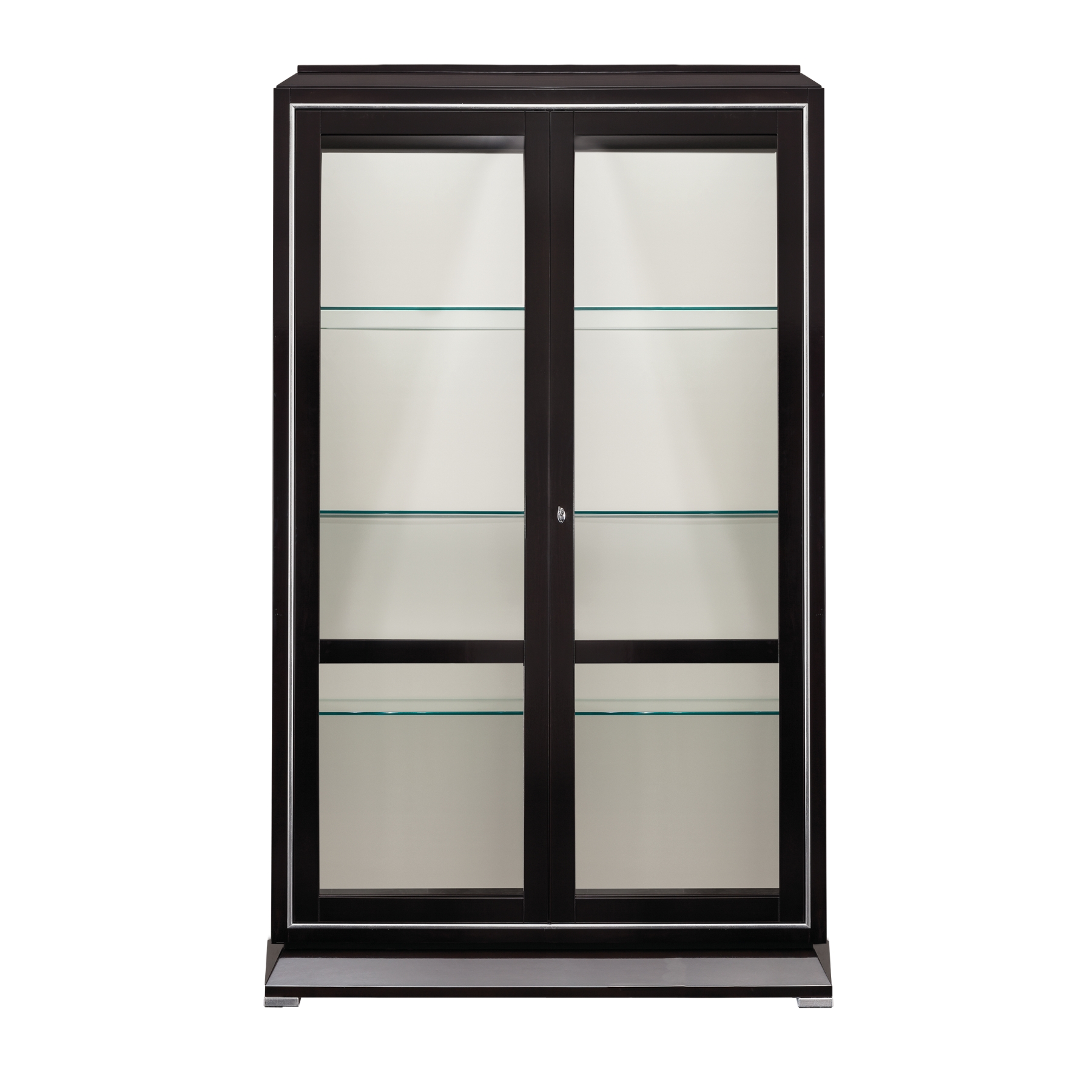 D0240 Vetrina 1 anta fianchi e anta con vetro schienale legno n° 4 ripiani in vetro chiave, piedini e profilo in finitura croma lucido n° 1 faretto Dimensioni Imballaggio 2 colli (90x50x230, 70x40x15) 1, 08 mc 73 kg
