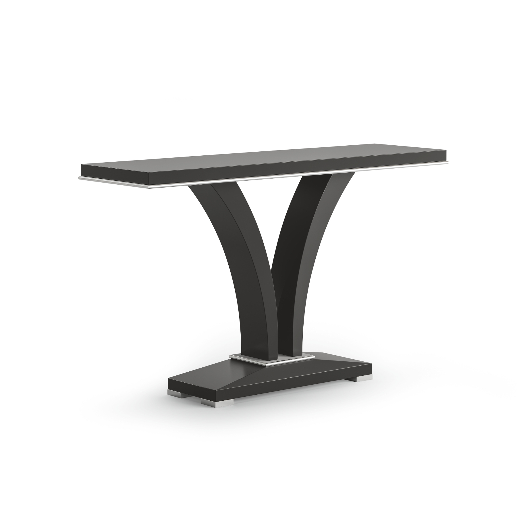 The Neoclassic-style console table adds a touch of marked elegance, with its simple yet impactful appeal.Piano e gambe in legno.