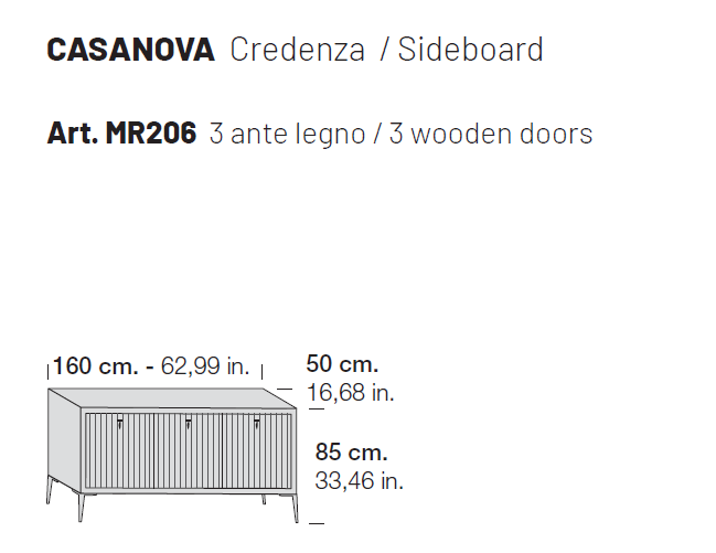 D0217 Credenza 3 porte (disponibile anche con cassettiera interna con guide ammortizzate auto-ritiranti) Maniglie PM03 in finitura cromo lucido Piedini e profili in finitura cromo lucido Dimensioni Interno (versione senza cassettiera): Interno (versione con cassettiera): Imballaggio 1 collo 1 (190x60x100) 1,14 mc kg 85 (versione senza […]