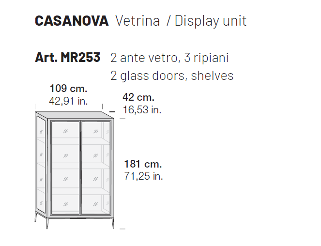 2 Ante vetro, 3 ripiani.
