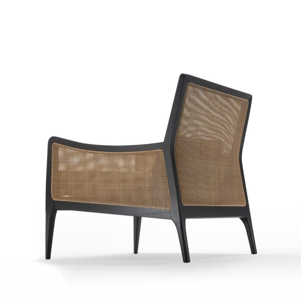 La struttura in legno della poltrona e della sedia accoglie elementi in rattan: un tocco di stile dal gusto retrò che denota prestigio. The armchair and chair’s wooden structure welcomes a few rattan details: a crowning glory vintage touch.